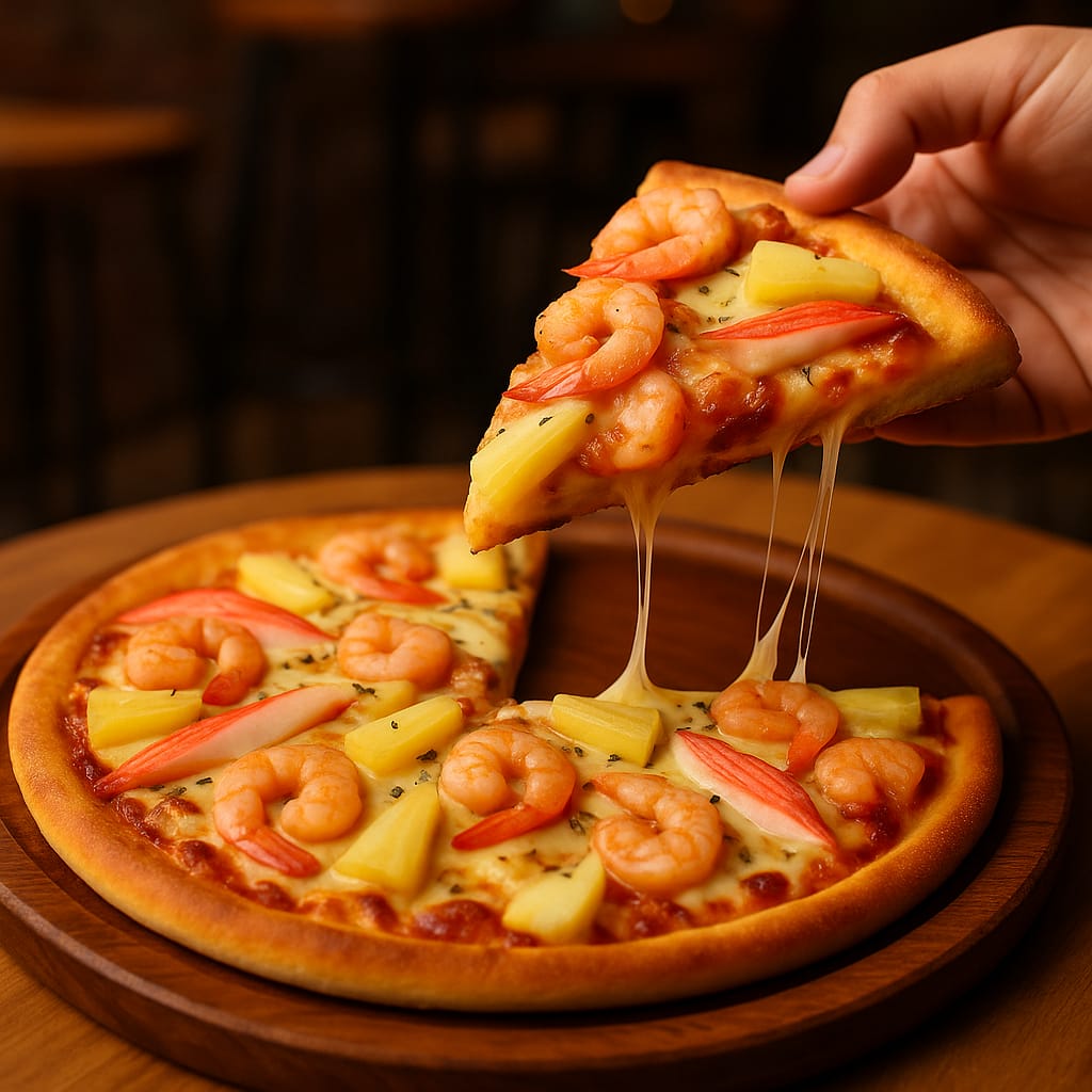 The ohsem pizza is very delicious, the dough is softer than a blanket and the cheese is melting in my mouth
